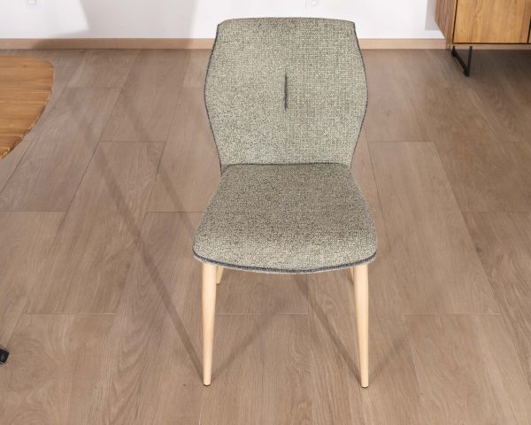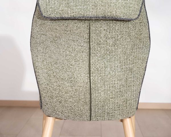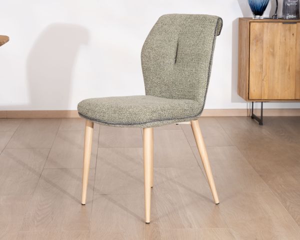 Il colore verde dellaseduta imbottita evoca uno spirito vintage rivisitato, perfetto per internidi metà secolo, moderni o scandinavi. Questa sedia in tessuto e legno chiaro si adatta bene sia ai materiali naturali che a quelli più moderni, offrendo una grande versatilità nella decorazione e aggiungendo un tocco di originalità chic.