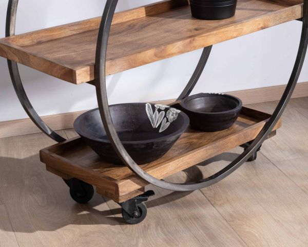 Questa credenza si distingue per l'uso di materiali nobili: legno d'acacia per i piani e metallo nero antico per la struttura. L'acacia, rinomata per la sua robustezza e bellezza naturale, conferisce calore e carattere a questo mobile. Il metallo, invece, garantisce una solidità costante e aggiunge un tocco di eleganza senza tempo.