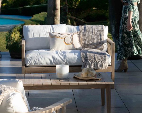 Di tanto in tanto, potete pulire il vostro salotto da esterno con acqua leggermente saponata e una spazzola a setole morbide. È meglio utilizzare prodotti naturali come il sapone nero. Risciacquate e lasciate asciugare all'aria. A seconda dell'esposizione dei vostri mobili, potete nutrire il legno e ravvivare la lucentezza dei materiali con una leggera applicazione di olio di lino utilizzando un pennello; poi rimuovete l'eccesso lucidando con un panno morbido e privo di pelucchi.
