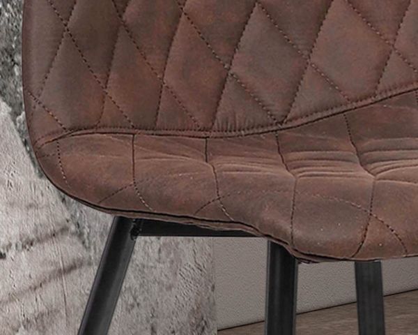 La combinazione di gambe affusolate e curve della seduta, e il contrasto tra metallo e microfibra, vi permetteranno di integrare questa sedia nei vostri interni moderni o contemporanei, anche negli ensemble più audaci. Se i vostri interni hanno un'atmosfera più classica o pastorale, questa sedia farà miracoli anche lì, grazie al suo aspetto confortevole e al marrone scuro della sua seduta trapuntata, che ricorda la pelle vintage. Le qualità di questa sedia in microfibra trapuntata la rendono un must per un arredamento moderno, funzionale ed esteticamente gradevole.