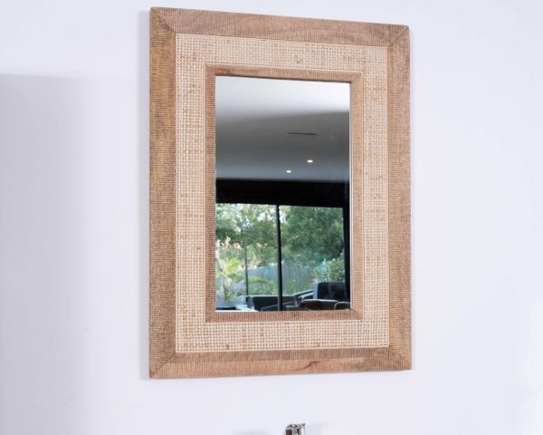 Con la sua cornice che combina canna e legno massiccio, questo specchio rettangolare ha un aspetto retrò vintage che è allo stesso tempo raffinato ed elegante.