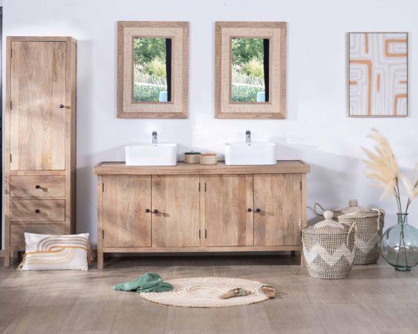 Materiali : Legno massiccio di mango naturale e canna, specchio .