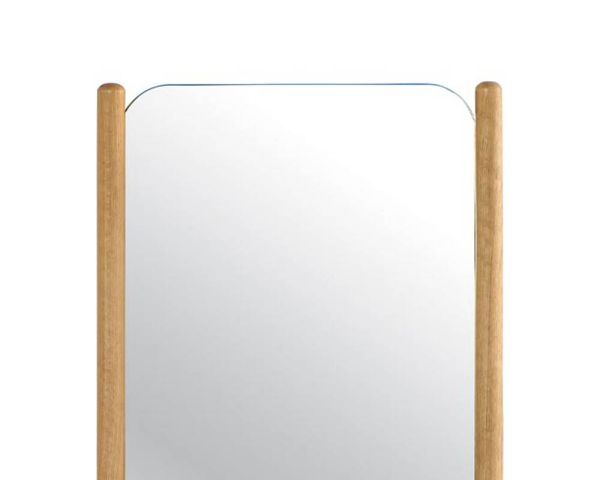 Con il suo stile arioso, questo specchio è progettato con due stipiti laterali in rovere e bordi arrotondati che ne alleggeriscono la presenza come oggetto e conferiscono morbidezza all'ambiente.