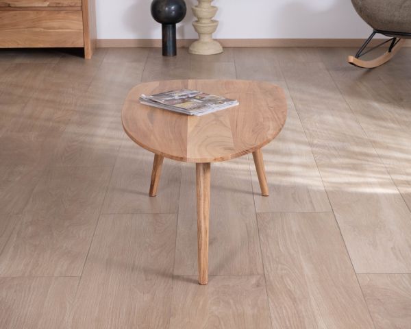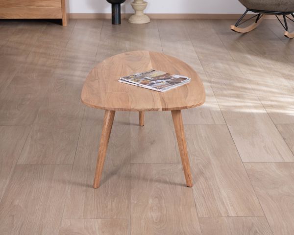 Tavolino a forma di barca in stile scandinavo "Voluto", 110 cm, legno massiccio di acacia