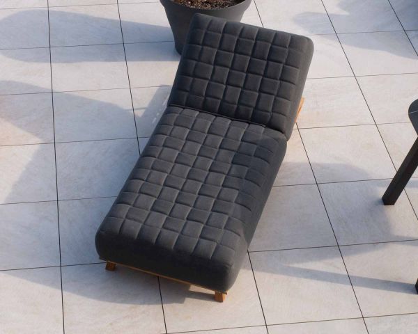 Materiali: tessuto Sunbrella®, schiuma QuickDry, teak massiccio, alluminio