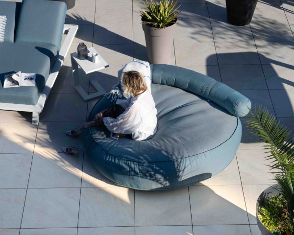 Per mantenere il mobile pulito quando non viene utilizzato per brevi periodi e per adattarsi alla forma di questo letto rotondo da terrazza Saint-Tropez preservando l'armonia del vostro spazio, il telo protettivo appropriato è disponibile sul nostro sito con il riferimento #9892.