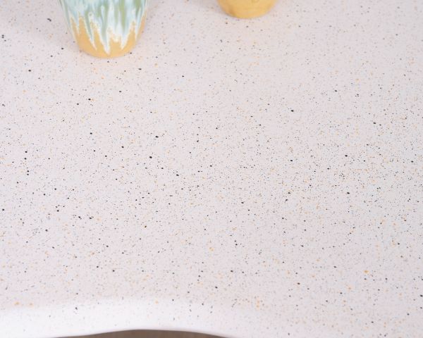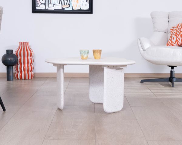 Struttura in MDF dalle linee morbide e fluide con finitura terrazzo