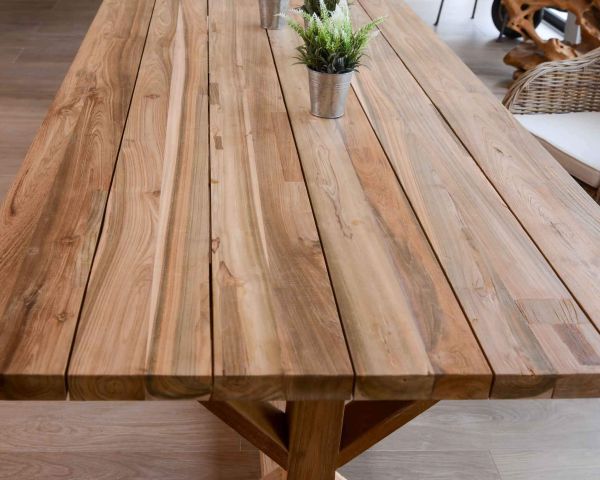 A Meuble House piace l'idea che i mobili restino al vostro fianco e vivano per molti anni. Per questo, per proteggere al meglio il vostro tavolo in teak, vi consigliamo di applicare di tanto in tanto una cera o uno speciale olio per legno esotico. Quando arriva l'autunno, ricordatevi di riporre il tavolo al coperto se non lo utilizzate nella vostra sala da pranzo, in modo da poterlo apprezzare di nuovo quando il tempo si riscalda!