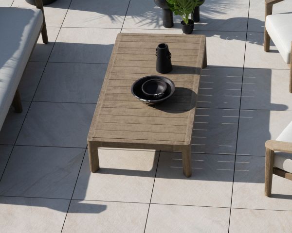 Realizzato in teak massiccio, ha una caratteristica tinta grigia e una finitura sabbiata che gli conferisce una consistenza unica e un fascino autentico. Resistente agli agenti atmosferici, questo tavolino è ideale per l'uso all'aperto, garantendo robustezza ed estetica per tutte le stagioni.