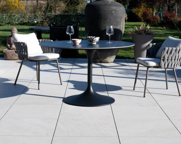 L'alluminio e la ceramica sono materiali resistenti per l'uso esterno e non richiedono cure particolari. È sufficiente lavare con acqua e un po' di detersivo, se necessario, per rimuovere eventuali macchie. Quando non viene utilizzato in inverno, è possibile coprire il mobile o riporlo al coperto, ma resisterà anche all'esterno.