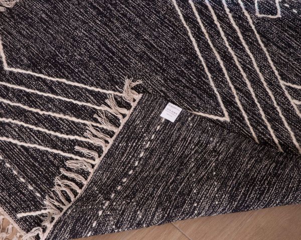 Questo tappeto di 120x180 cm aggiungerà una dimensione culturale e artistica al vostro arredamento, oltre ad essere visivamente attraente grazie alla texture accattivante e al calore naturale della lana intrecciata. Intramontabile, questo tappeto nero dall'aspetto screziato e dai motivi etnici ricamati in bianco resisterà ai cambiamenti di tendenza e sublimerà la vostra stanza.