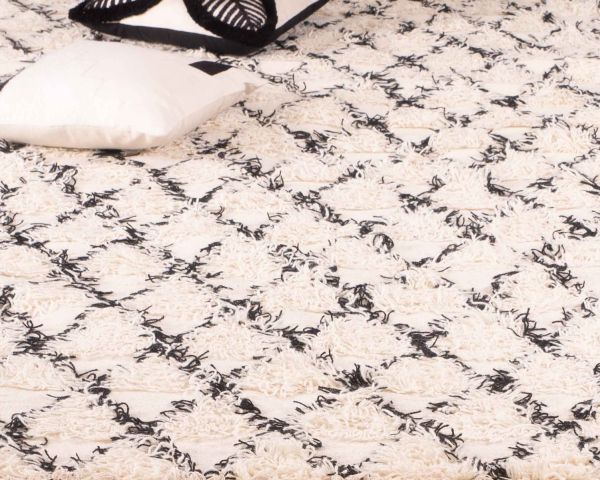 Questo tappeto grafico fa parte di una gamma di prodotti decorativi che potete trovare sul nostro sito nella sezione "Decorazione". Questa gamma comprende cuscini e tappeti che aggiungeranno personalità e stile al vostro spazio vitale.