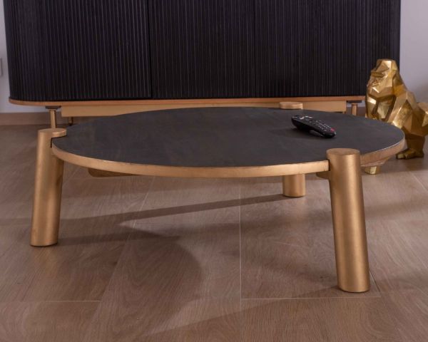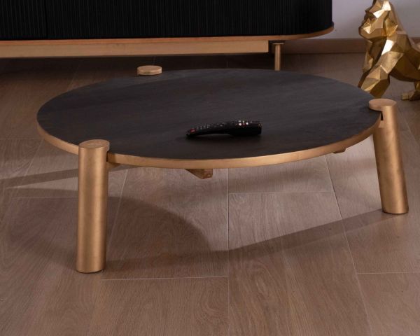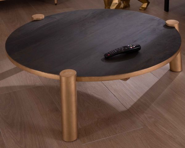 Tavolino rotondo in legno massiccio nero e oro "Pop Vintage" diam. 90cm