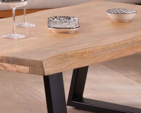 Combinando efficacemente il legno naturale di mango e il metallo industriale nero, il tavolino è solido e resistente. Con bordi grezzi che seguono la forma naturale di un tronco d'albero, il vostro tavolo rettangolare vi permette di aggiungere un tocco selvaggio ai vostri interni. Le linee e lo stile del vostro mobile si adattano a diversi mondi. L'arredamento trendy, indù o contemporaneo gli si addice perfettamente.