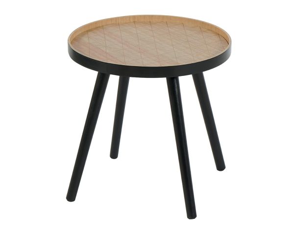 Al centro del soggiorno, il tavolino di design dai richiami scandinavi retrò dà il tono giusto: tutti gli sguardi sono puntati su di lui, che funge da collegamento tra il mobile TV e il divano. Il nero del mobile mette in risalto l'incisione sul piano in MDF. Solido e robusto, questo tavolino con un diametro di 41 cm e un'altezza di 41 cm vi seguirà nelle vostre avventure. I suoi colori polivalenti si adatteranno facilmente all'arredamento in continua evoluzione.