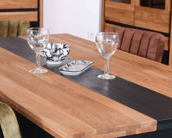 Guida del tavolo, gambe e cintura in pino massiccio tinto nero