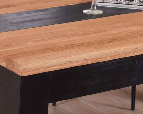 Valorizzate la vostra sala da pranzo o la vostra cucina con il tavolo "Toly" in rovere e pino. Con il suo look moderno, questo tavolo quadrato in legno massiccio vi conquisterà sicuramente. Le sue ampie gambe nere, il piano centrale nero e la cintura mettono in risalto la tonalità calda e accogliente del rovere massiccio oliato. Il legno ha un aspetto rassicurante e permette di utilizzare il vostro nuovo tavolo 140x140 cm in diversi ambienti. In una cucina in stile contemporaneo, nella sala da pranzo della vostra casa di campagna che volete ravvivare, in un giardino d'inverno con pareti in pietra, questo elegante tavolo vi permetterà di accogliere i vostri ospiti in modo informale ma di classe. Potete facilmente abbinarlo a sedie in ferro nero o in tessuto di velluto. Con un'altezza di 77 cm, questo tavolo troverà facilmente la giusta collocazione.