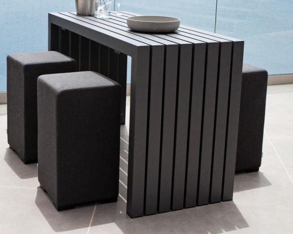 Con il suo look distintivo e contemporaneo e la struttura in alluminio nero di design, il vostro bar da esterno confermerà il vostro gusto per gliarredi da esterno di bella fattura e carattere.il tavolo alto da esterno "Java Island" è elegante e unico, con il suo eccezionale design ergonomico.