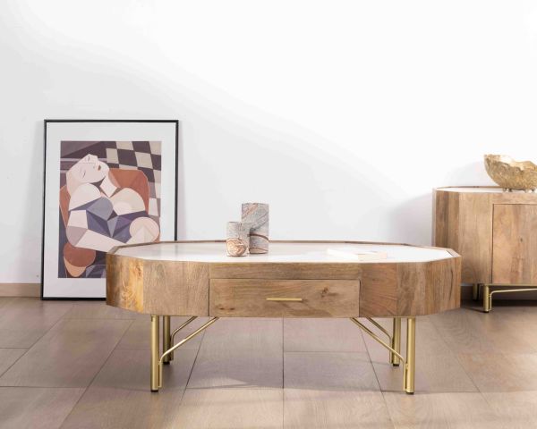 Aggiungete un tocco originale di chic e raffinatezza con questo tavolino da caffè "Bruges" in mango e terrazzo e immergetevi in un mondo delicato in cui materiali e forme si fondono sottilmente.