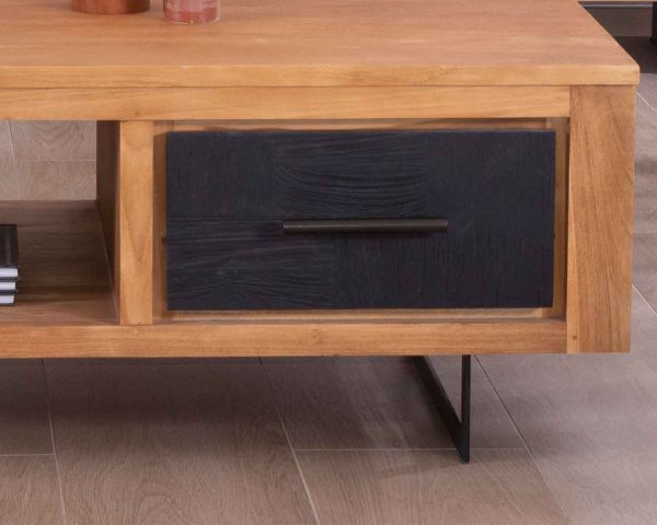 Look sobrio, materiali riciclati, design efficace e colori senza tempo. Tutto ciò conferma il look di tendenza del tavolino in teak "Trend". Di forma rettangolare, questo tavolino si adatta a un'ampia gamma di spazi e stili. Lungo 121 cm e largo 71 cm, ha una nicchia aperta e due cassetti. Scorrendo su guide metalliche e completamente aperti, i cassetti consentono di accedere facilmente a tutto il loro contenuto. Peccato che non sia possibile nascondere una tavoletta di cioccolato nel retro (dovrete trovare un altro nascondiglio...). O forse potreste avere ognuno il proprio cassetto e la propria scatola di sassi?