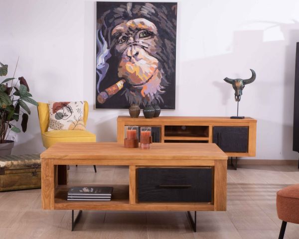 Facile da vivere e di ottima fattura, la nuova gamma "Trend" è ideale per chi ama la modernità del nero e il calore di una tonalità di legno naturale. Realizzati in teak massiccio riciclato con e senza texture, i mobili "Trend" esaltano il meglio di questo materiale nobile ed esotico. È possibile aggiungere facilmente oggetti decorativi con tocchi di nero o di colore, come una seduta in tessuto giallo. Osare un po' di più vi metterà di buon umore e quando arriverà la sera sarete felici di allungare le gambe sul vostro tavolino in legno per godervi la vostra serie. La vita è bella e la sera è dolce.