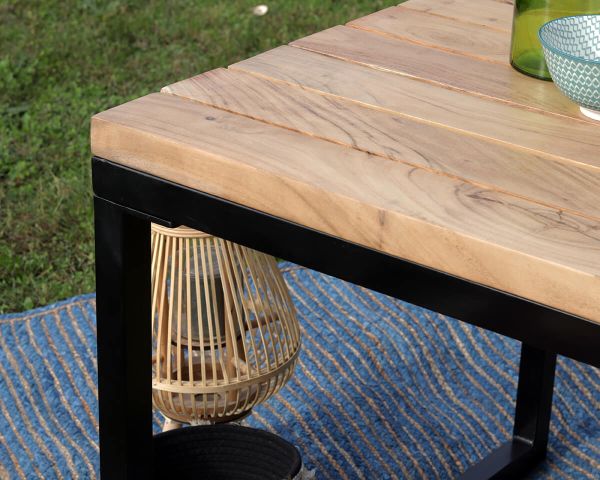 Il piano del tavolo è realizzato in acacia massiccia, un legno esotico denso e resistente. Con uno spessore di soli 4 cm, garantiscestabilità e solidità, rendendoil vostro acquisto robusto e durevole. In cucina o in sala da pranzo, il tavolo "Garden" si adatta sia ai pasti dei giorni feriali che alle cene più formali del fine settimana. Gli ospiti si sentiranno come in un ristorante, seduti comodamente davanti a un mobile così bello.