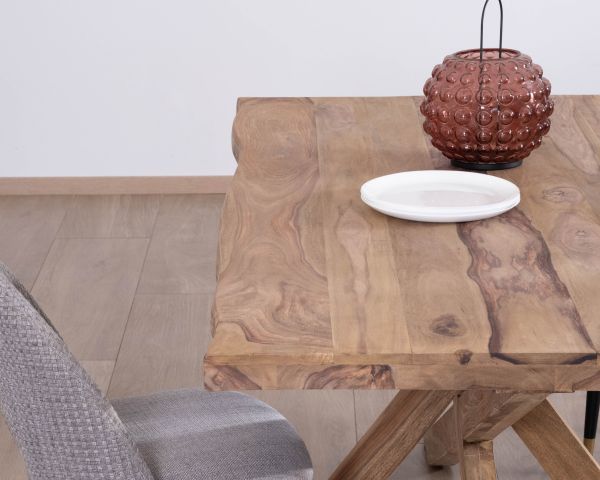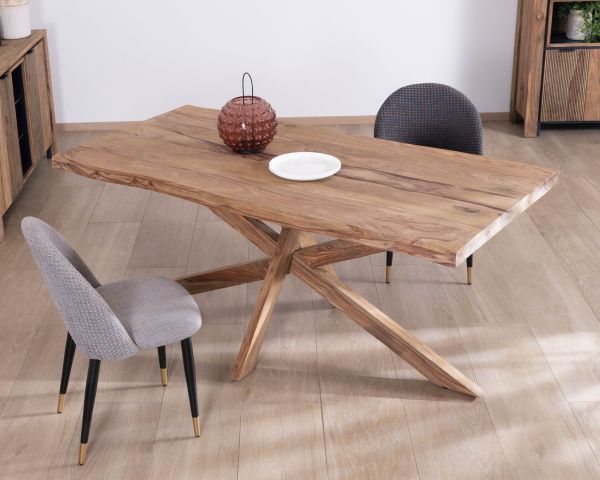 Tavolo da pranzo da 180 cm con piano naturale e gambe incrociate in 100% palissandro "Enoa"