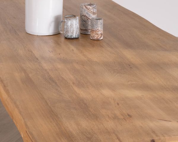 Ogni giorno è sufficiente passare un panno umido o una spugna per rimuovere briciole e polvere. Evitare detergenti aggressivi, non adatti al legno massiccio. In caso di versamento di liquidi o di prodotti grassi o macchianti, pulire rapidamente. Si consiglia di utilizzare tovagliette per evitare di sporcare. Si consiglia inoltre di evitare il contatto diretto con fonti di calore e di nutrire di tanto in tanto il legno con un prodotto adatto a preservarne la lucentezza.