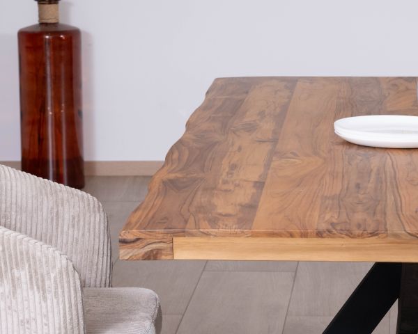 Si noti inoltre che i bordi del tavolo sono leggermente ondulati e possono avere un aspetto leggermente diverso da un pezzo all'altro, a seconda dei movimenti naturali di ciascuna tavola di legno utilizzata per la sua fabbricazione.