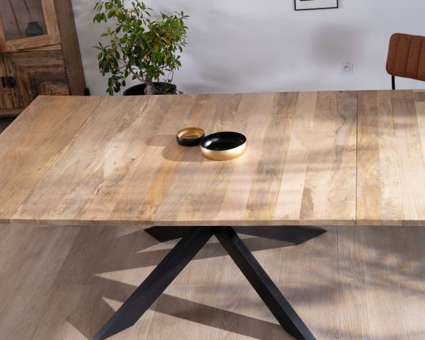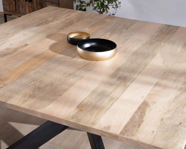 Elegante con il suo piano in mango massiccio e le sue venature calde e seducenti, il tavolo da pranzo porterà un fascino senza tempo nella vostra casa e renderà la vostra sala da pranzo immediatamente amichevole e accogliente. Con una dimensione di 140x140 cm senza prolunghe, può ospitare fino a 8 persone in una cucina o in una piccola sala da pranzo. Con le prolunghe da 40 cm, il piano del tavolo misura 140x220 cm e consente di ospitare da 10 a 12 persone, conservando il fascino autentico del legno massiccio. Le prolunghe sono state progettate con la stessa cura del piano del tavolo, in modo che si abbinino perfettamente e non sia necessario coprirle con una tovaglia.
