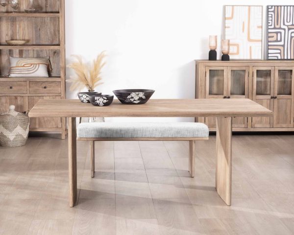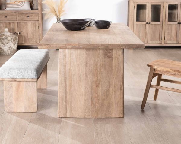 Il legno si abbina bene a toni neutri e a materiali naturali come il cotone o la pietra, che esaltano l'armonia naturale del mango. Potete anche allestire perfettamente il vostro tavolo da pranzo con elementi colorati che esalteranno il carattere del vostro arredamento e aggiungeranno una nota dinamica alla calma dell'ambiente.