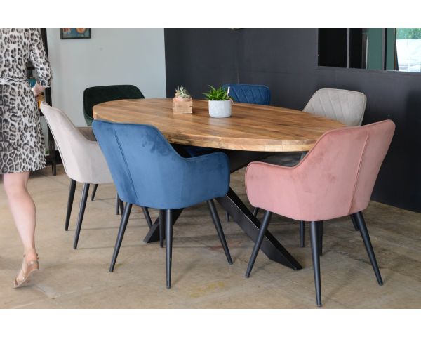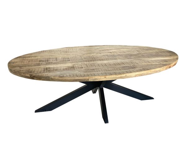 Il tavolo da pranzo ovale "Andy" è un centrotavola dal design industriale e contemporaneo, perfetto per valorizzare la vostra sala da pranzo. L'ampio piano in mango massiccio e la base in metallo Mikado uniscono bellezza e robustezza per creare un mobile tanto funzionale quanto elegante.