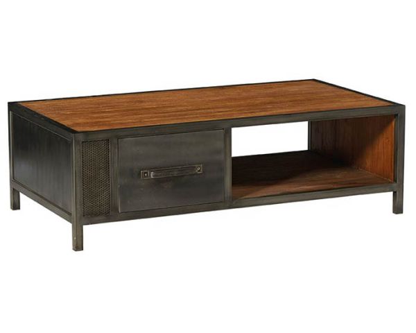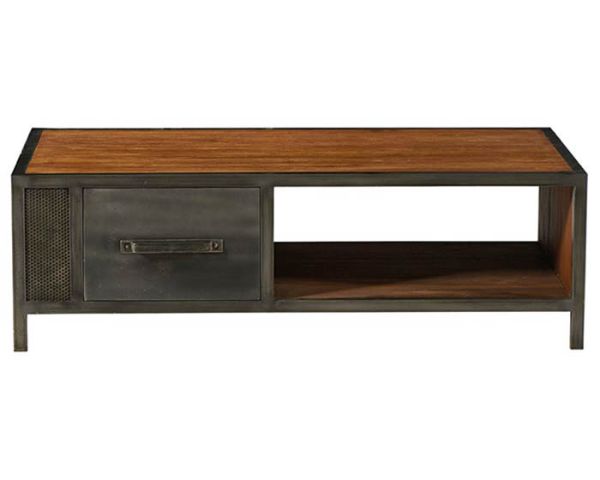 La struttura del mobile e le sue finiture (cuciture saldate, griglie forate, maniglie, ecc.) aggiungono quel ricercato tocco industriale, mentre il legno massiccio di teak recuperato è ultra-caldo e autentico. Il risultato è un mobile di carattere e dalla personalità forte e decisa! Collocato tra il mobile TV e il divano, il vostro nuovo tavolo in legno e metallo invecchiato diventerà un elemento essenziale del vostro spazio abitativo.