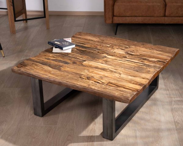 Questo tavolino quadrato in legno di recupero della collezione "Cidade" presenta un'elegante fusione di sostenibilità e design moderno. Con una misura di 100 cm per lato, la sua forma equilibrata e le sue dimensioni generose offrono lo spazio perfetto per riunire i vostri ospiti intorno a un drink o ai vostri libri preferiti.