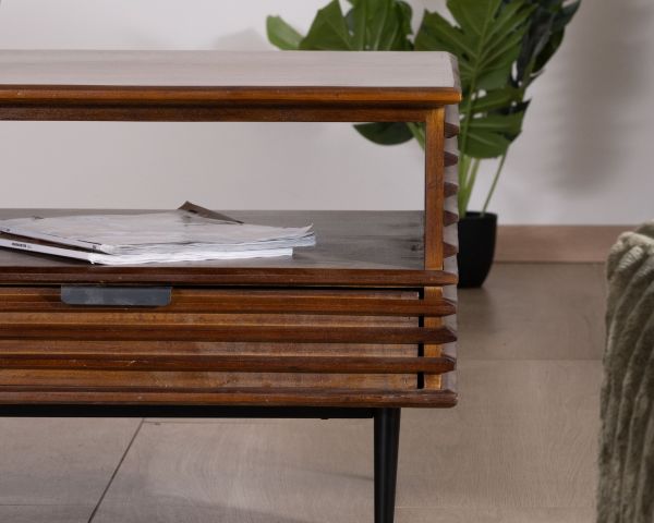 Materiali: Mango massiccio, teak riciclato, compensato e metallo