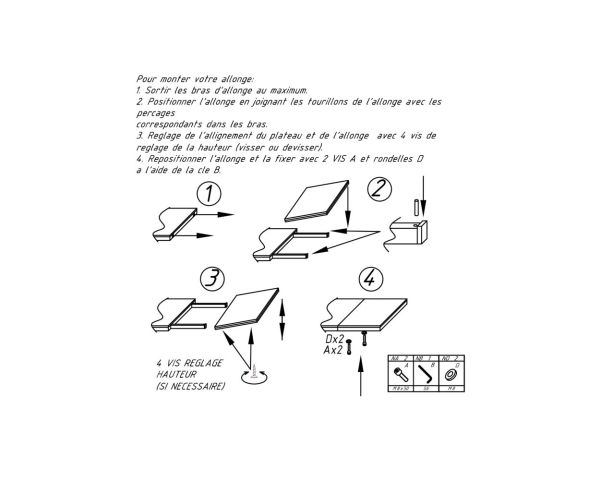 Le prolunghe si fissano ai bracci scorrevoli del tavolo con le viti in dotazione.