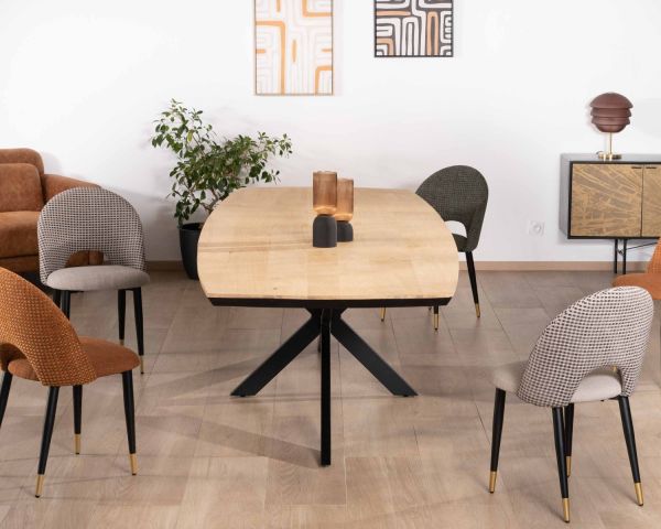 Scoprite il tavolo da pranzo da 2 m in mango e metallo della collezione "Pisa", che unisce l'eleganza moderna alla robustezza naturale. Realizzato con un piano in mango massiccio da 200 cm e sostenuto da un'originale base in metallo nero, offre uno spazio generoso per ospitare comodamente da 8 a 10 persone.