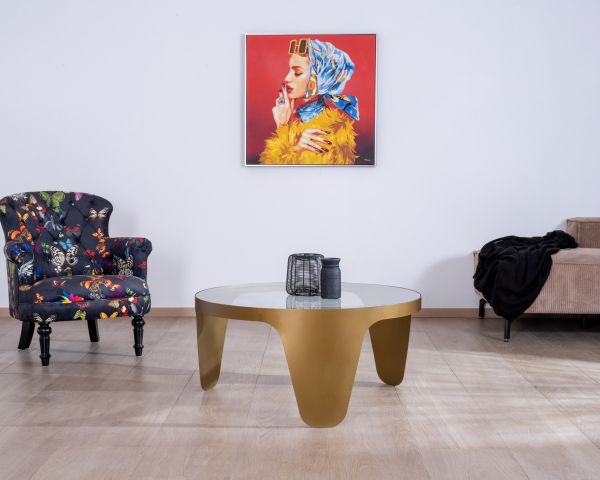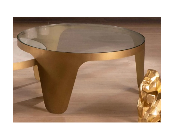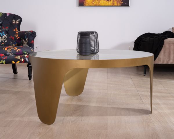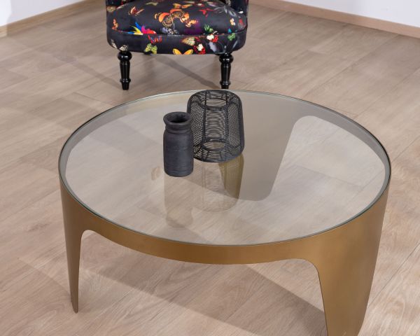Aggiungete un tocco finale di stile al vostro salotto con questo tavolino contemporaneo in ottone e vetro della collezione "Gilt Antique". Con il suo design sinuoso e i suoi colori luminosi, questo tavolino rotondo di 90 cm di diametro aggiungerà un tocco morbido e raffinato al vostro salotto.