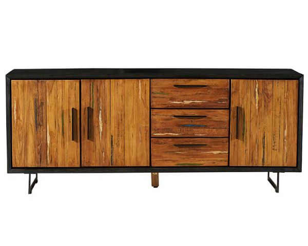 Con le sue linee eleganti e moderne, il legno di barca riciclato, il legno di waru tinto di nero e le gambe in metallo , questa credenza bassa aggiungerà stile al vostro salotto. Dispone inoltre di un ampio spazio per riporre gli oggetti e mantenere l'organizzazione del soggiorno.