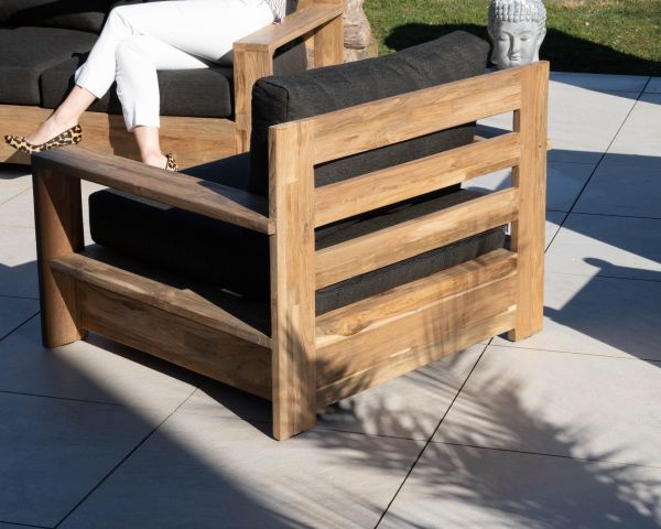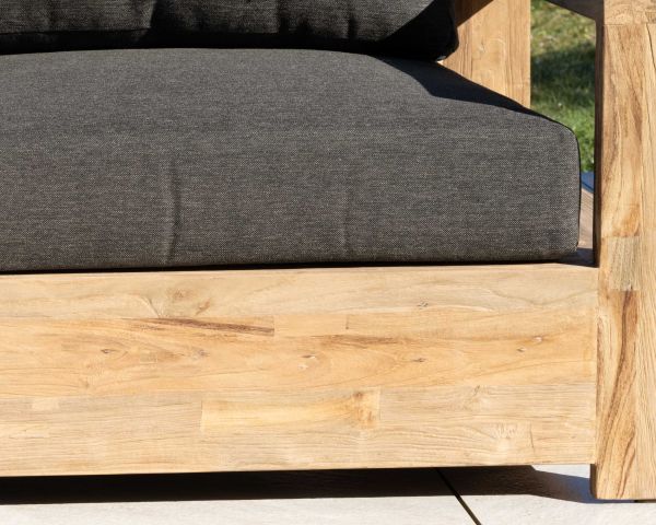 Il teak è un legno estremamente durevole, rinomato per essere resistente e imputrescibile, grazie al suo contenuto naturale di olio. Inoltre, in fase di progettazione viene trattato in modo specifico per l'uso esterno.