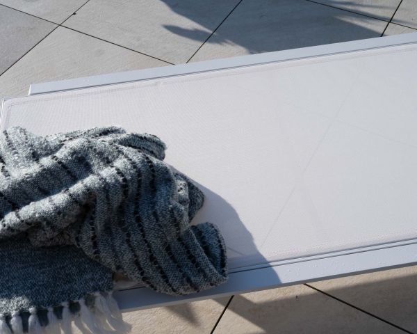 L'alluminio e il textilene sono materiali resistenti all'uso esterno e non richiedono cure particolari. È sufficiente lavare con acqua e un po' di detersivo, se necessario, per rimuovere eventuali macchie. Durante l'inverno, si consiglia di riporre i mobili al chiuso o di coprirli.