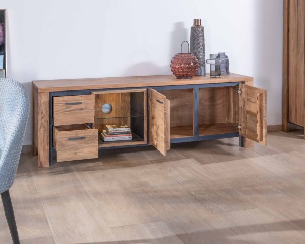 Scoprite il porta TV in acacia massiccia da 180 cm della collezione "Fantaisie", che sarà sicuramente un'aggiunta gradita alle vostre serate al cinema e un complemento elegante al vostro arredamento, unendo funzionalità e fascino.