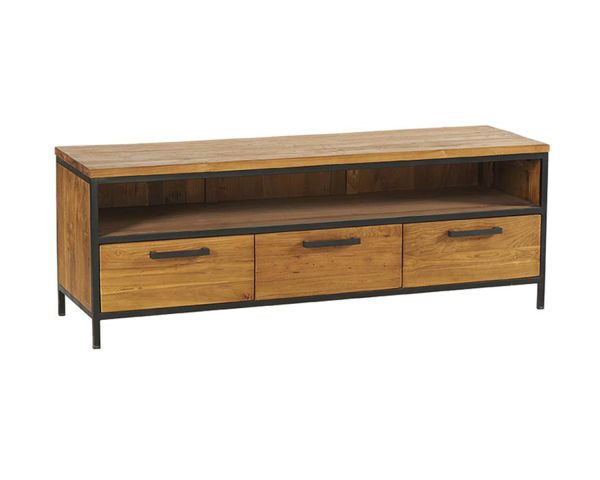 Chi è attento all'ambiente apprezzerà il fatto che il legno utilizzato è riciclato. Questo gli conferisce una bella patina. Decisamente senza tempo, questo mobile TV si adatta a tutti gli interni, dai più classici ai più moderni. Se nel vostro salotto avete già dei mobili in teak massiccio, questo mobile TV si integrerà perfettamente. Lo stesso vale per la pelle marrone. Facile da vivere e da manutenere, questo mobile TV è di sicuro interesse per i clienti che cercano mobili di qualità... e originalità! E di originalità!