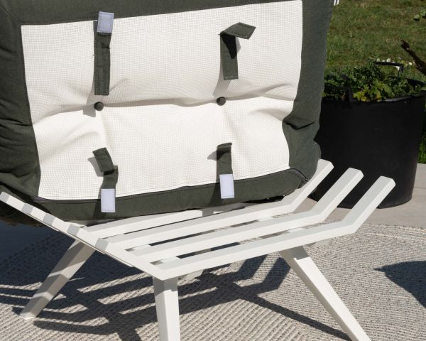 Tuttavia, si consiglia di riporre i mobili al chiuso o di coprirli durante l'inverno o quando non vengono utilizzati per lunghi periodi. Visitarela nostra copertura su misura(riferimento: #10559) con dimensioni appositamente adattate per proteggere completamente la poltrona e il poggiapiedi.