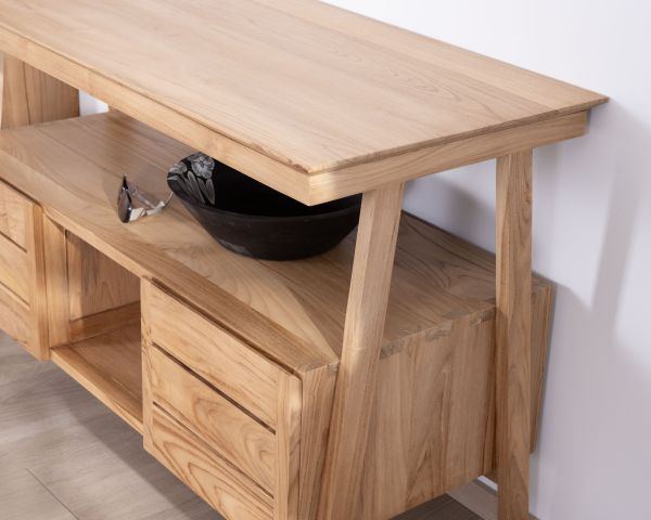 Il legno di teak è naturalmente impermeabile e imputrescibile e impedisce alle macchie di penetrare in profondità. Ogni giorno, tuttavia, si consiglia di eliminare gli schizzi d'acqua con un panno morbido o un panno in microfibra per evitare ristagni. Per la pulizia quotidiana, è sufficiente una spazzola a setole morbide o una spugna non abrasiva e acqua saponata per la manutenzione dei mobili. Occasionalmente, una o due volte l'anno a seconda della frequenza e dell'uso, una leggera applicazione di cera incolore per teak o acquaragia nutrirà il legno e ne preserverà la lucentezza, preservandone l'aspetto naturale.