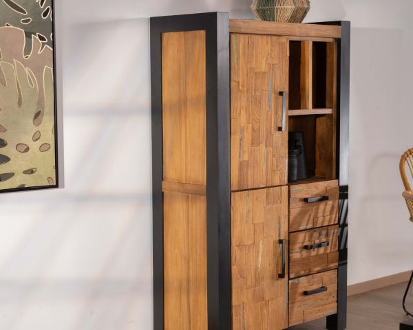 Per rafforzare l'aspetto riciclato e autentico del mobile, sui frontali sono visibili piccoli segni colorati