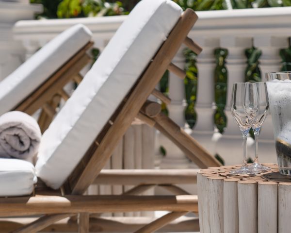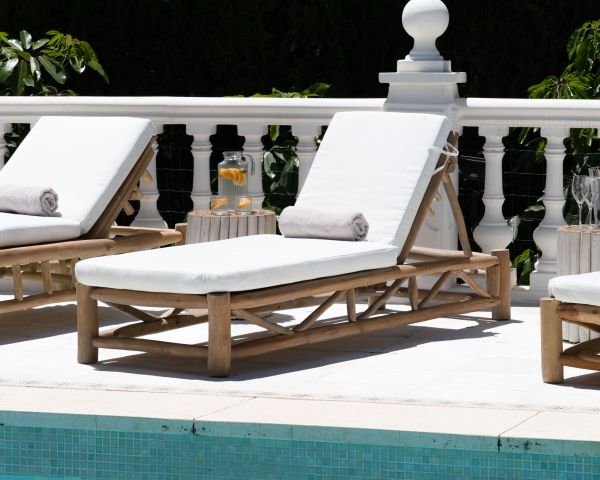 Lettino prendisole "Sumatra" a 1 posto dal design esotico in rami di teak