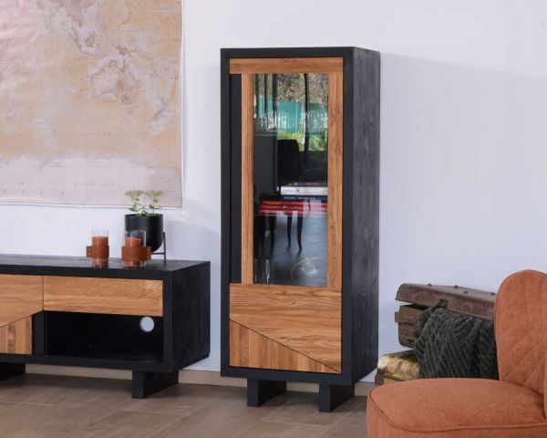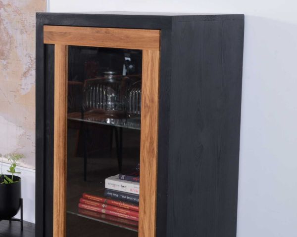 Vetrina a 1 anta in vetro e legno massiccio "Flix" in stile moderno