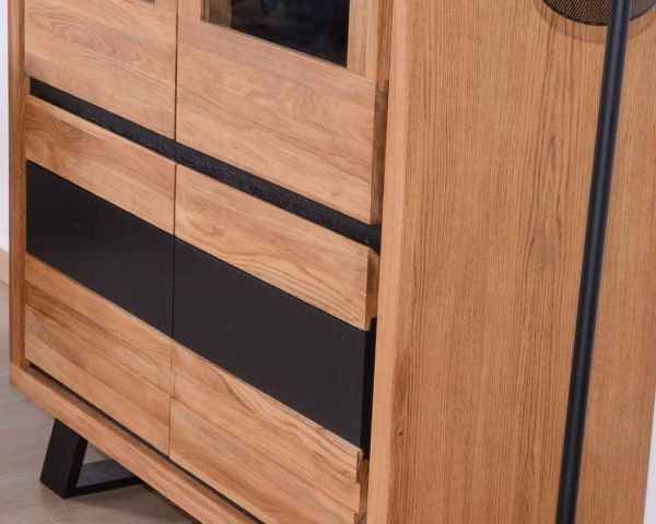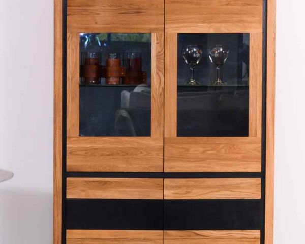 Vetrina "Toly" a 4 ante in rovere massiccio e nero, altezza 152 cm