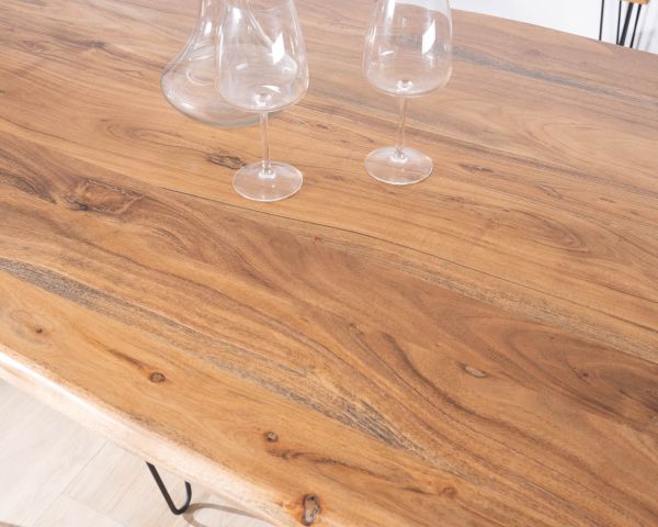 È sufficiente passare ogni giorno un panno umido o una spugna per rimuovere briciole e polvere. Evitare detergenti aggressivi, non adatti al legno massiccio. In caso di versamento di liquidi o di prodotti grassi o macchianti, pulire rapidamente. Si consiglia di utilizzare tovagliette per evitare di sporcare. Si consiglia inoltre di evitare il contatto diretto con fonti di calore e di nutrire di tanto in tanto il legno con un prodotto adatto a preservarne la lucentezza.